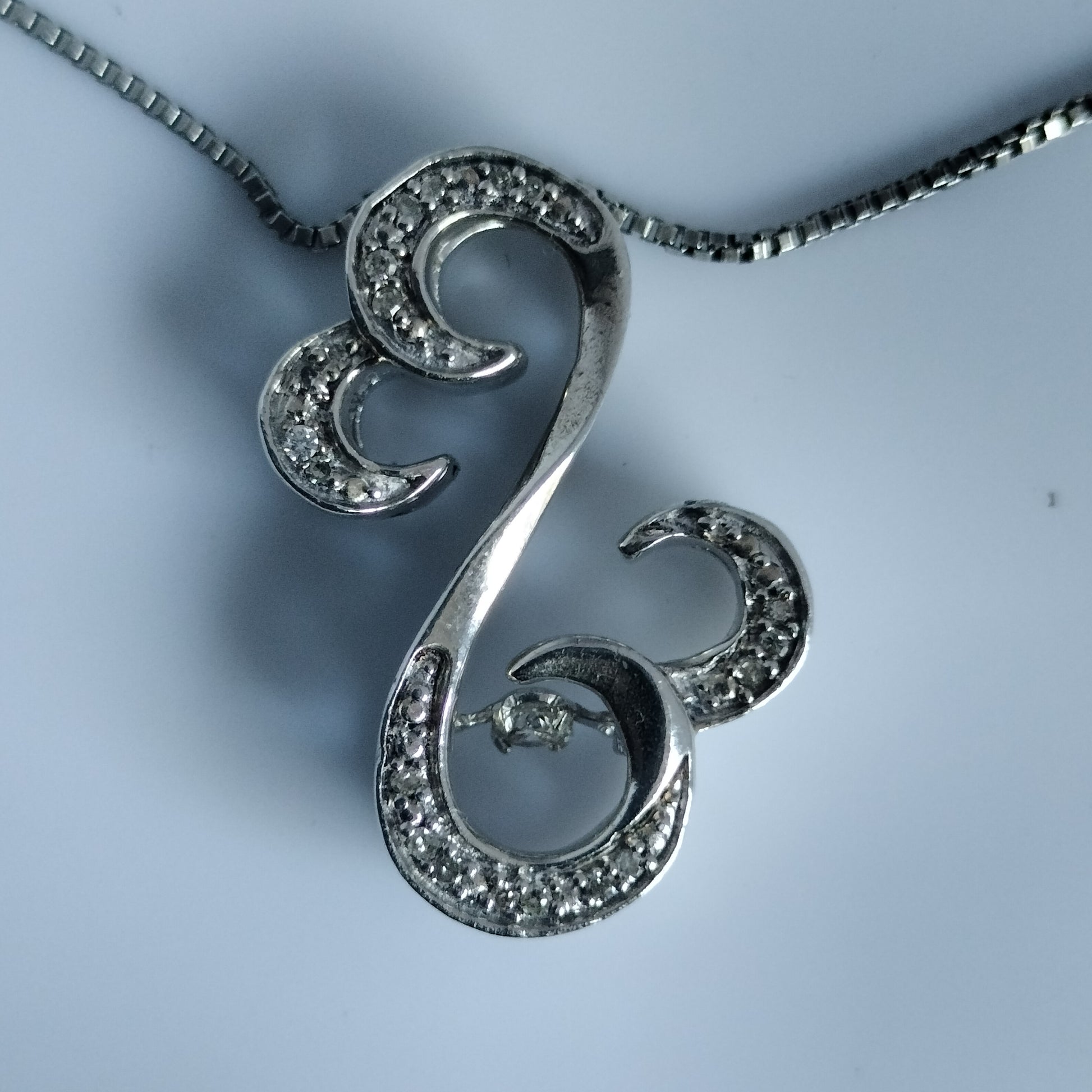 Expertly crafted with 3.7 grams of Sterling silver, this Jane Seymour Open Hearts Rhythm Pendant and Chain features a stunning floating diamond. With a 20 inch box chain and secure lobster clasp, this estate piece is a timeless addition to any jewelry collection.