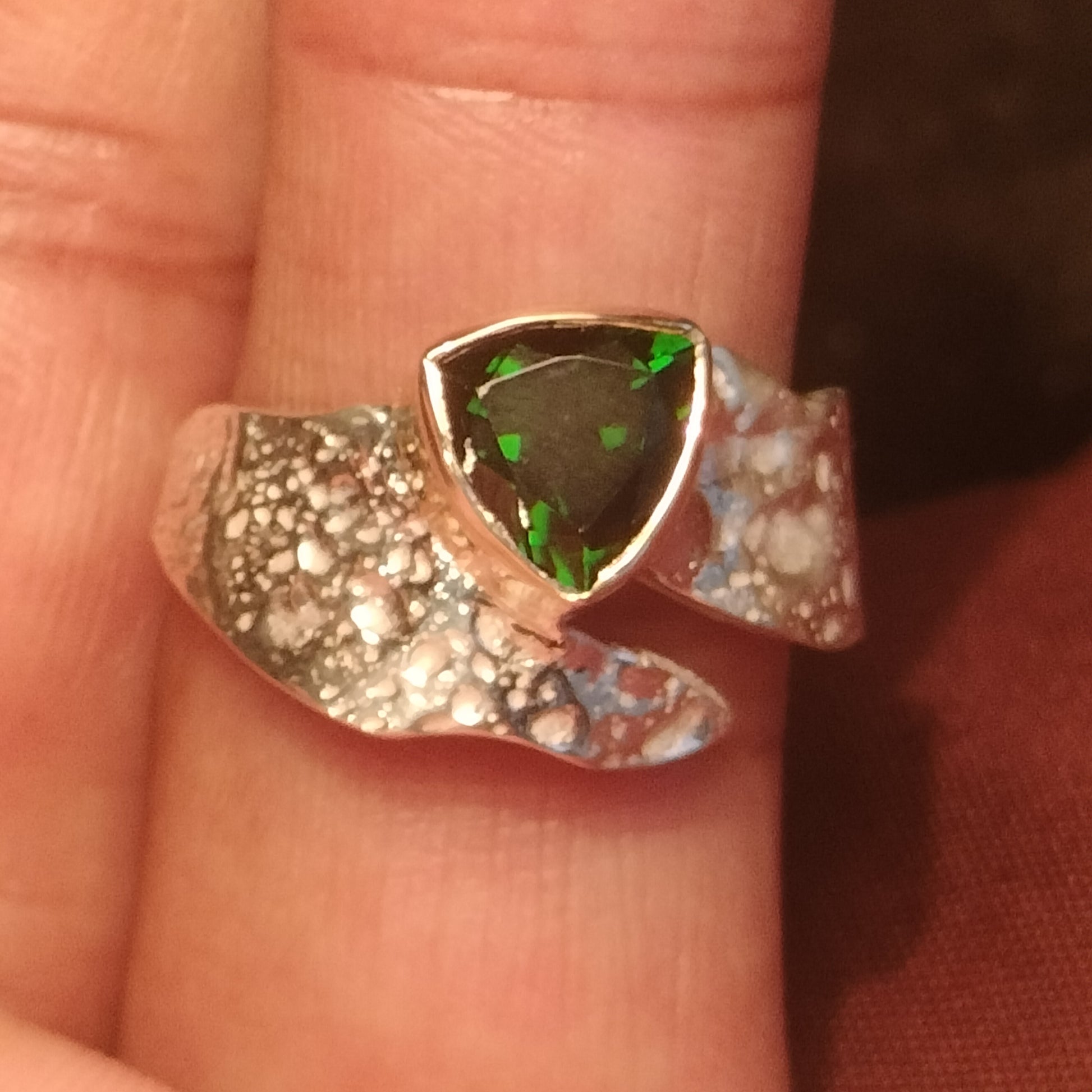 Sterling Silver and 14k Gold chrome Diopside Ring