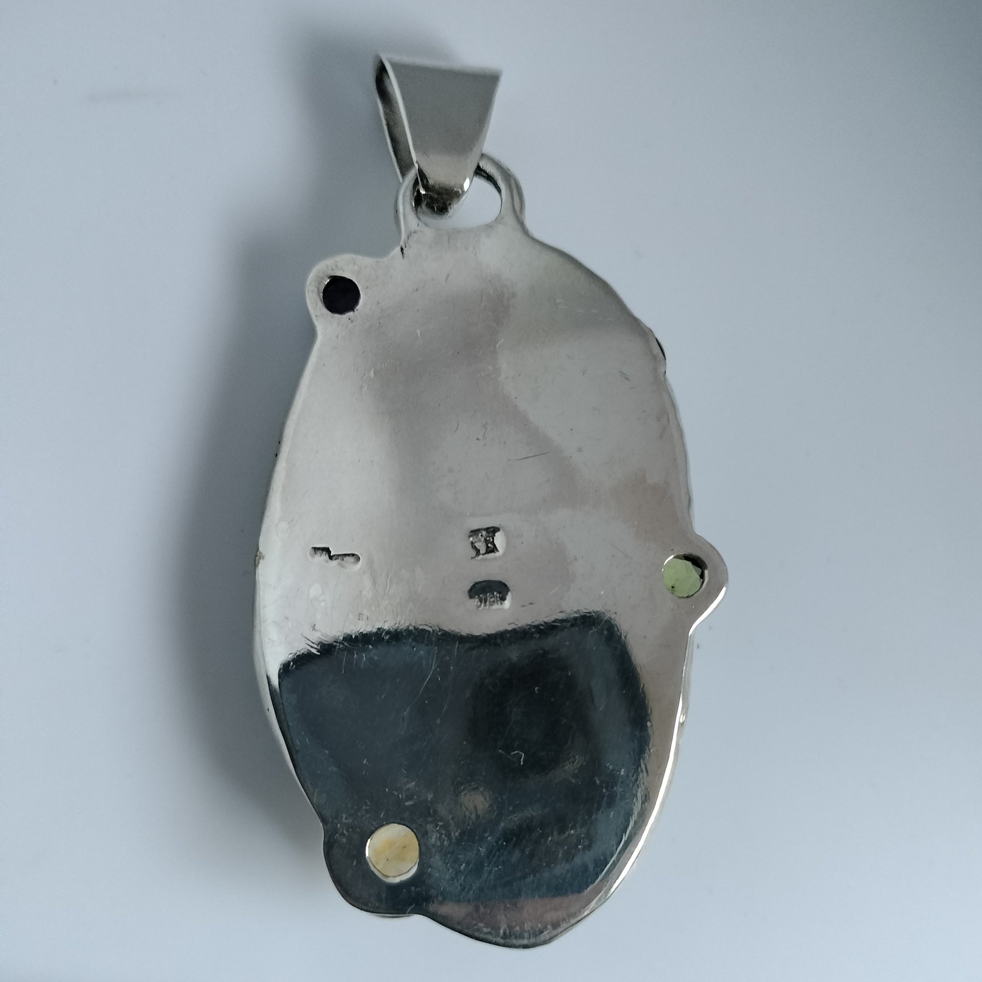 3 by 1.5 inch, artist Tanean Bijl,freeform epidote chrystal cluster, amethyst, peridot,citrine, 18k Gold accents, 31 grams total weightExpertly crafted by artist Tanean Bijl, this Avant Garde Pendant features a freeform epidote crystal cluster, accented with amethyst, peridot, and citrine stones. Made with sterling silver and solid 18k gold, it weighs 31 grams and measures 3 by 1.5 inches. Elevate your style with this unique and stunning piece.