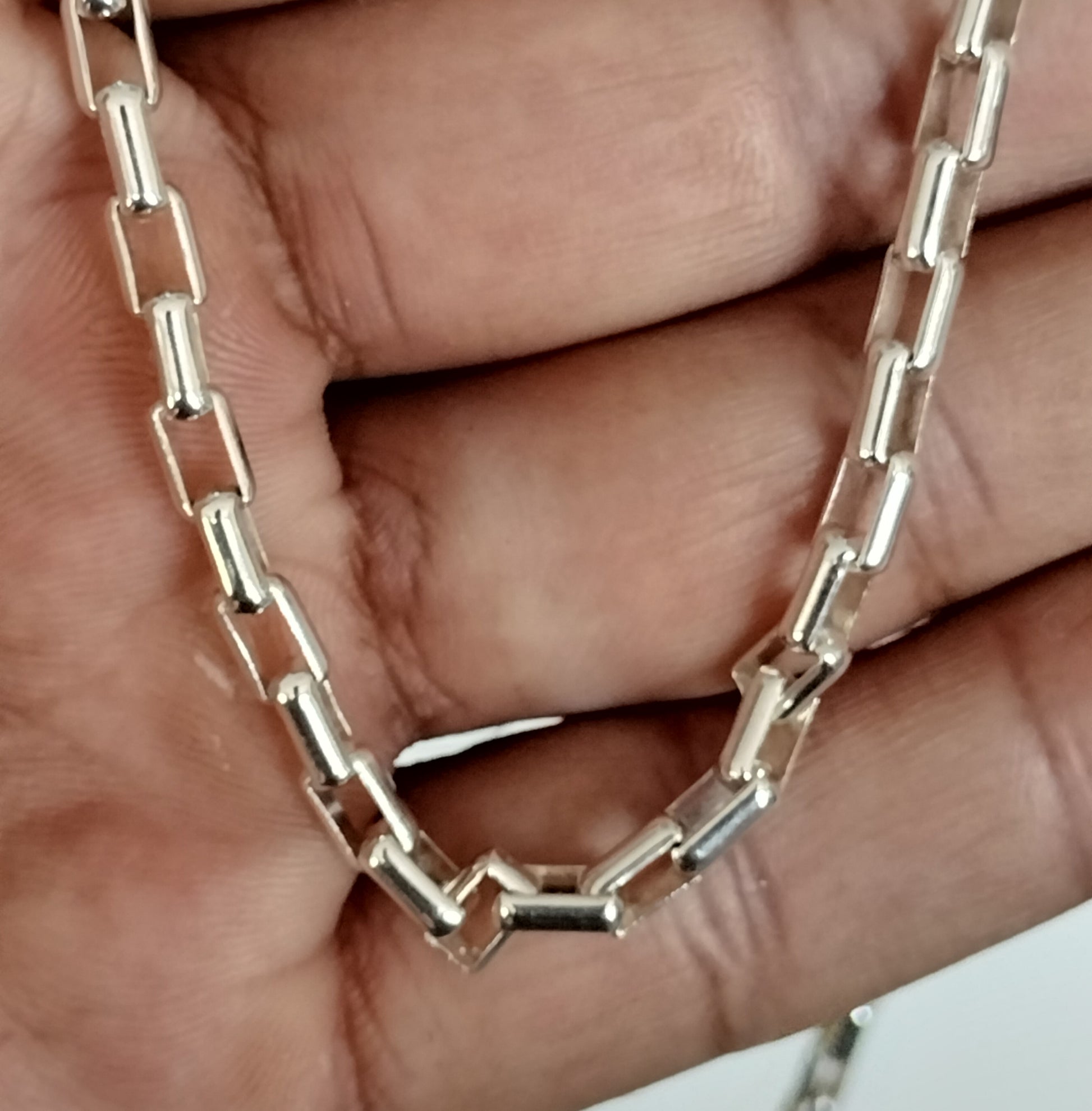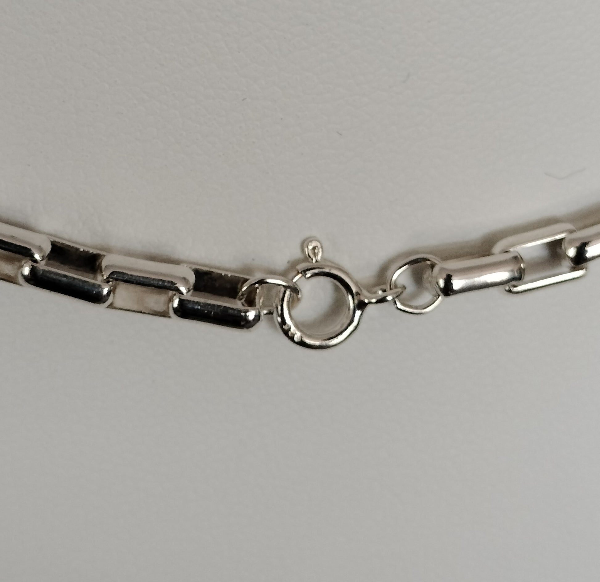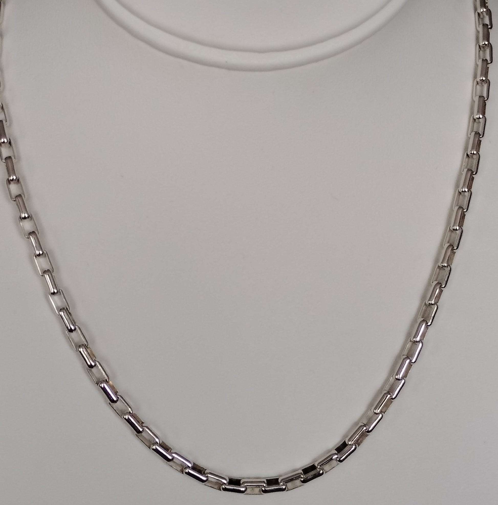 Expertly crafted, this 21.6 gram, 18 inch Sterling Silver Box Chain with a sturdy 4mm width is perfect for everyday wear. Its secure spring ring clasp ensures ease of use, making it a timeless addition to any jewelry collection. Made from high-quality materials, this estate piece is built to last.