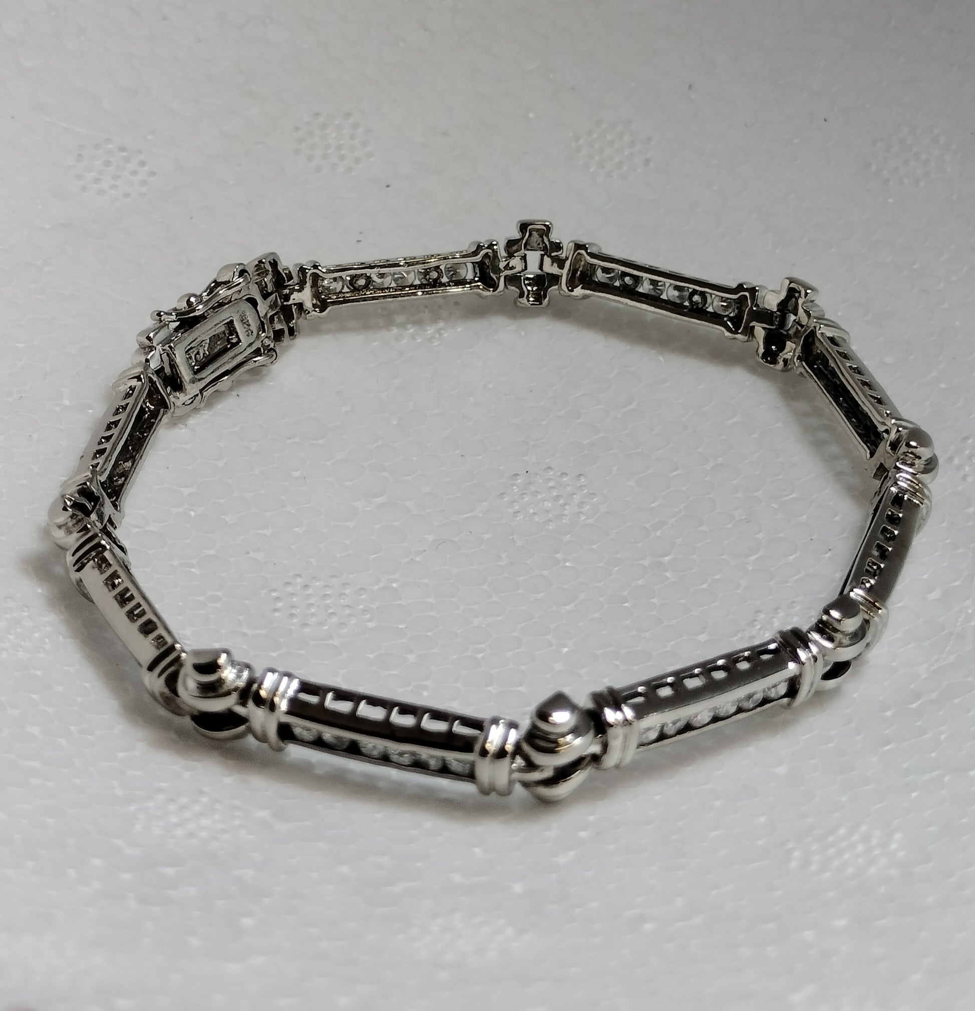 Discover the luxury of our Sterling Silver Cubic Zirconia Tennis Bracelet. With a weight of 13.8 grams and a length of 7.5 inches, this estate piece is crafted with precision and detail. Its 7mm size and 1 carat total weight will add sparkle and elegance to any outfit.