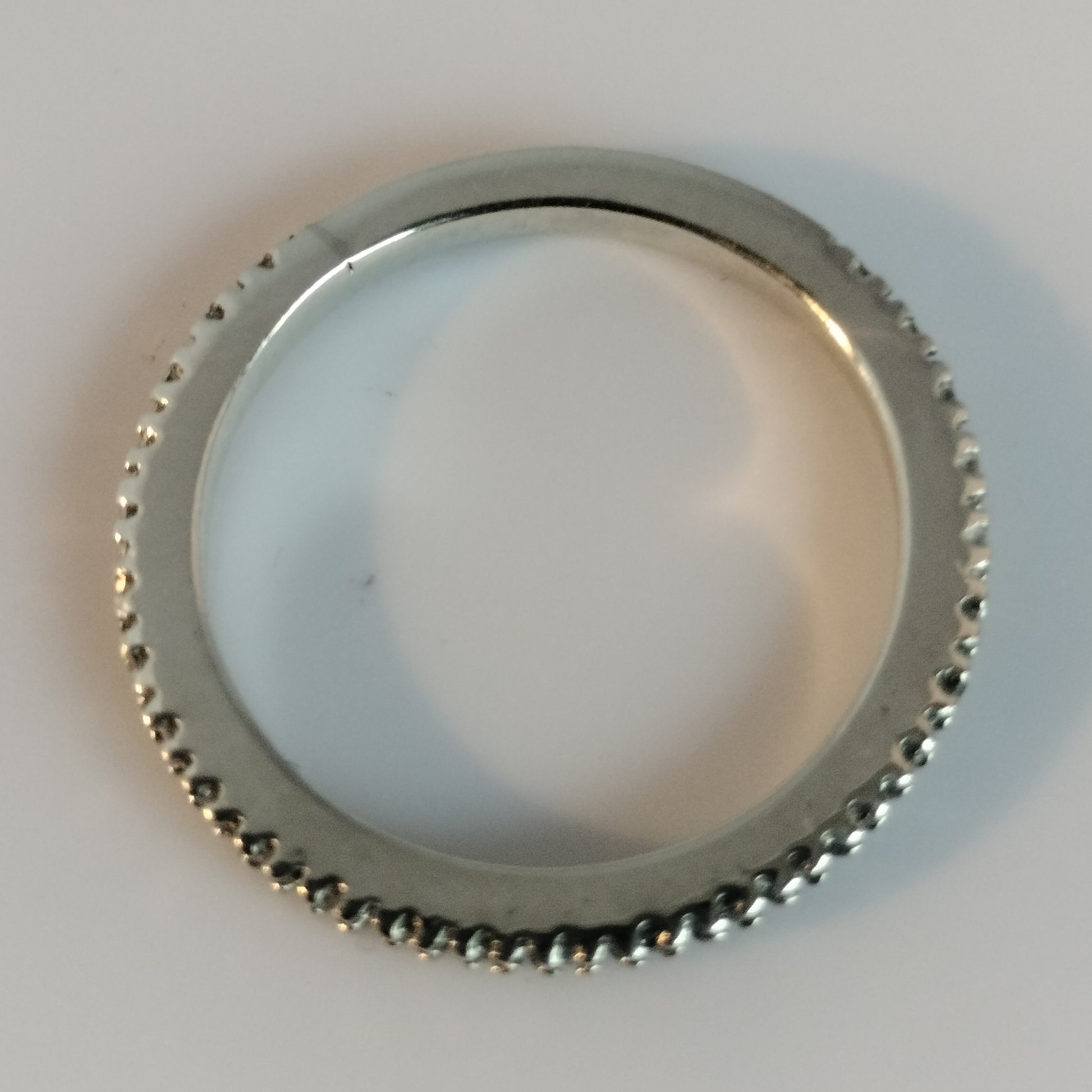 Expertly crafted with 2.0 grams of polished sterling silver, this diamond band offers a timeless and elegant accessory. The 2mm band showcases .15 carats of natural diamonds, adding a touch of sparkle to any outfit. Estate-kept and in a size 6.5, this band is a must-have for any jewelry collection.