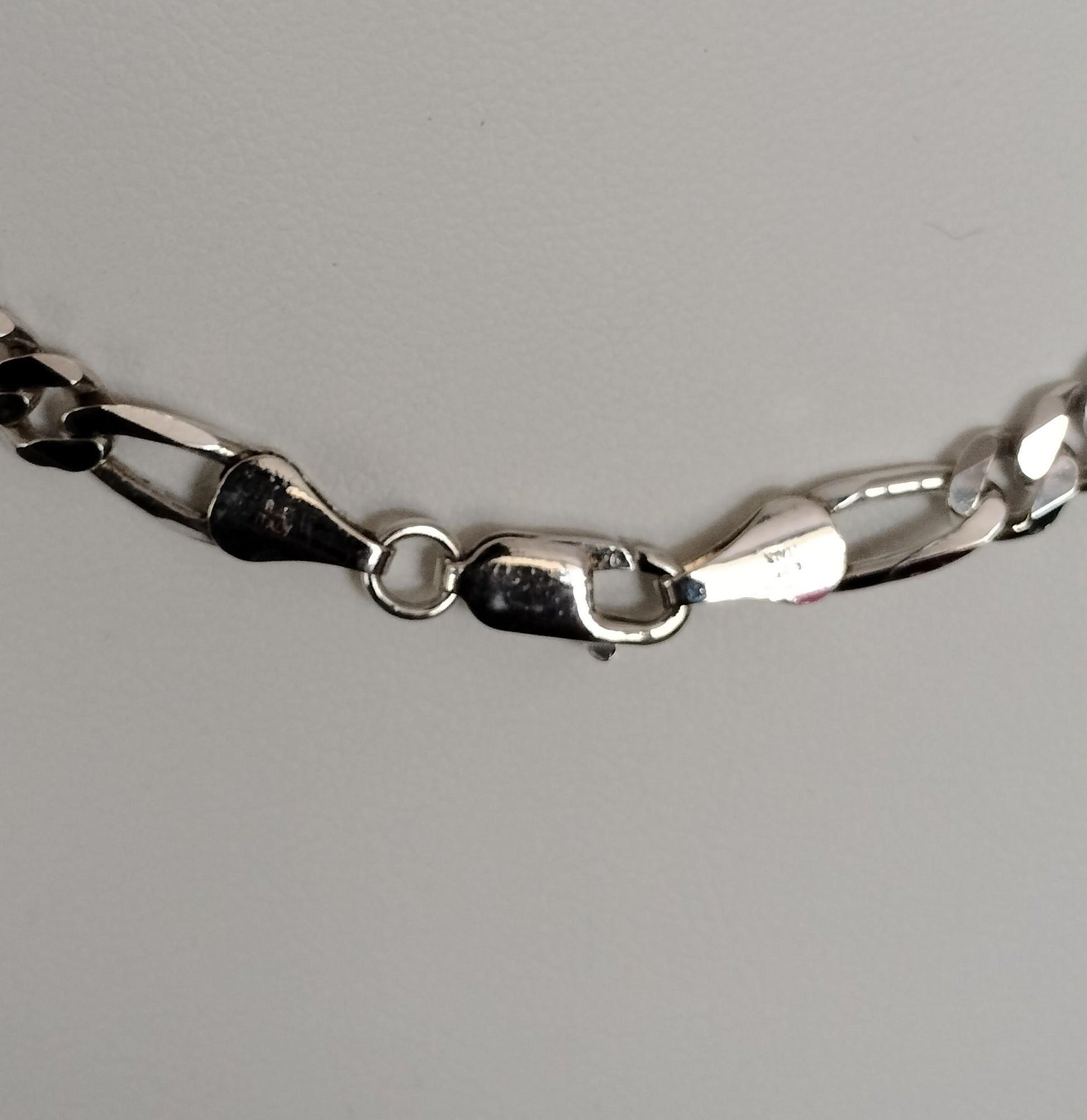 This Sterling Silver Figaro Necklace is a stunning estate piece. Weighing 24.8 grams and measuring 24 inches in length, the necklace features a 5.3mm width and a secure lobster clasp. Crafted with sterling silver, this necklace is a perfect combination of elegance and durability.