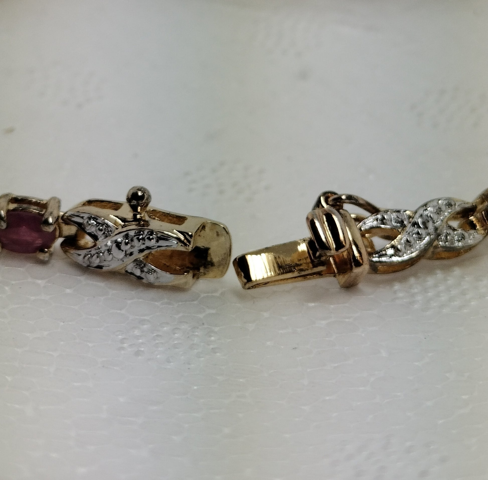 Sterling Silver Gold Plated Ruby and Diamond Tennis Bracelet