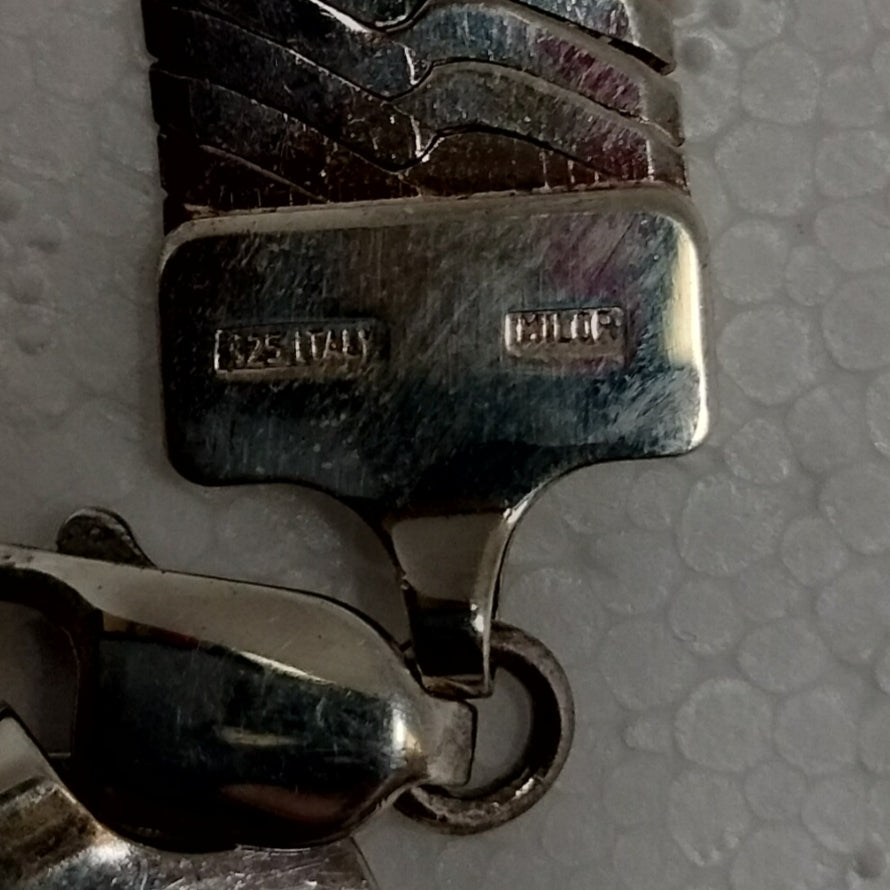 Expertly crafted by Milor, this Sterling Silver Herringbone Necklace weighs 46.4 grams and boasts a large 13mm width, offering a bold and luxurious look. With a secure lobster clasp, it is the perfect addition to your jewelry collection. This estate piece is both timeless and elegant.