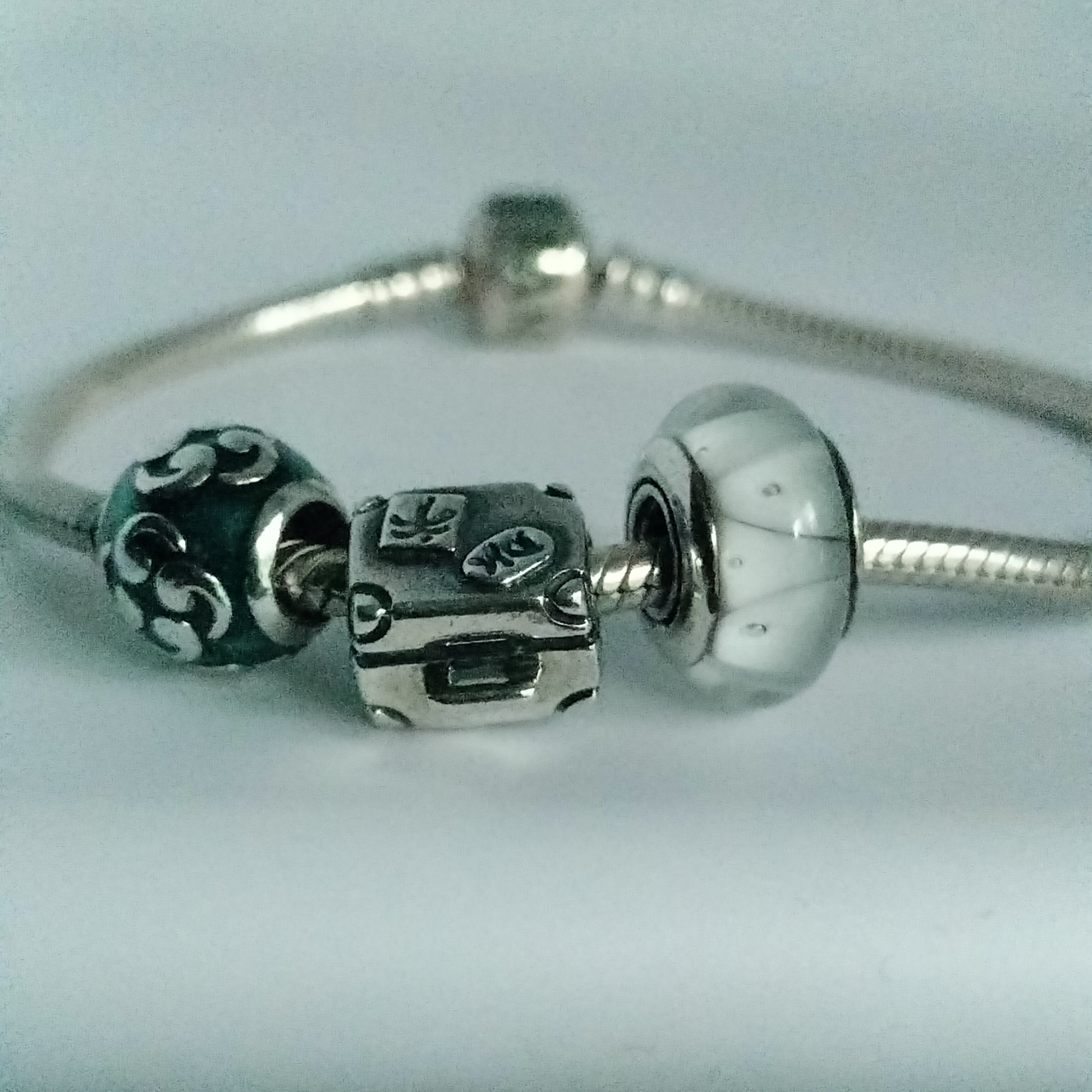 Expertly crafted with 26 grams of sterling silver, this Pandora bead bracelet is the perfect accessory for any occasion. With a length of 7 inches and 3 authentic Pandora beads, it adds a touch of elegance and sophistication to any outfit. Show off your style with this must-have bracelet.