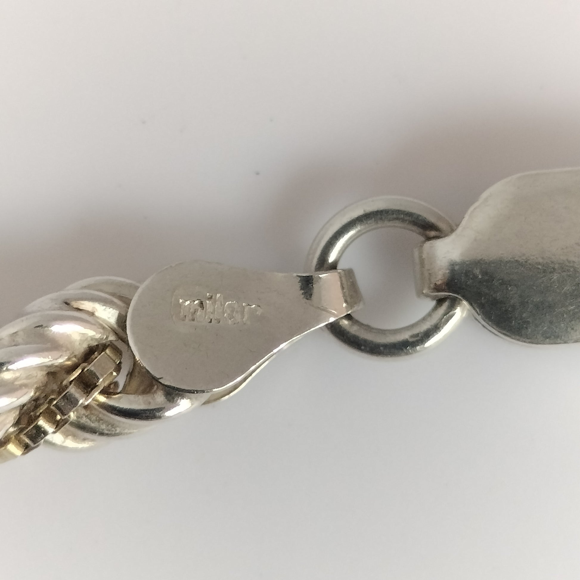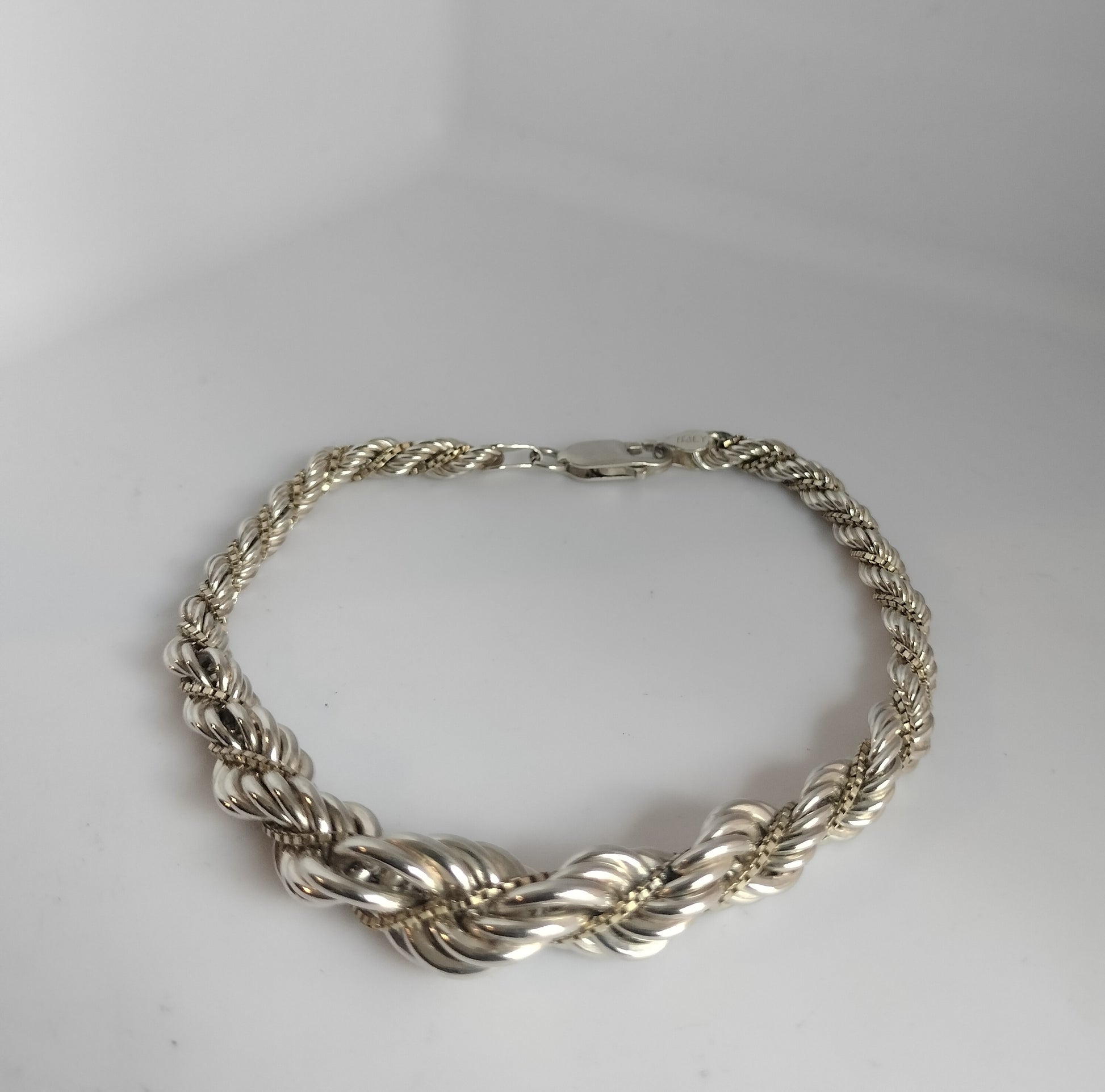 Expertly crafted with 15 grams of high-quality sterling silver, this elegant bracelet boasts a unique two-tone design. The graduated rope and box chain adds sophistication to any outfit, and the secure lobster clasp closure ensures it stays in place all day. A must-have for any jewelry collection.