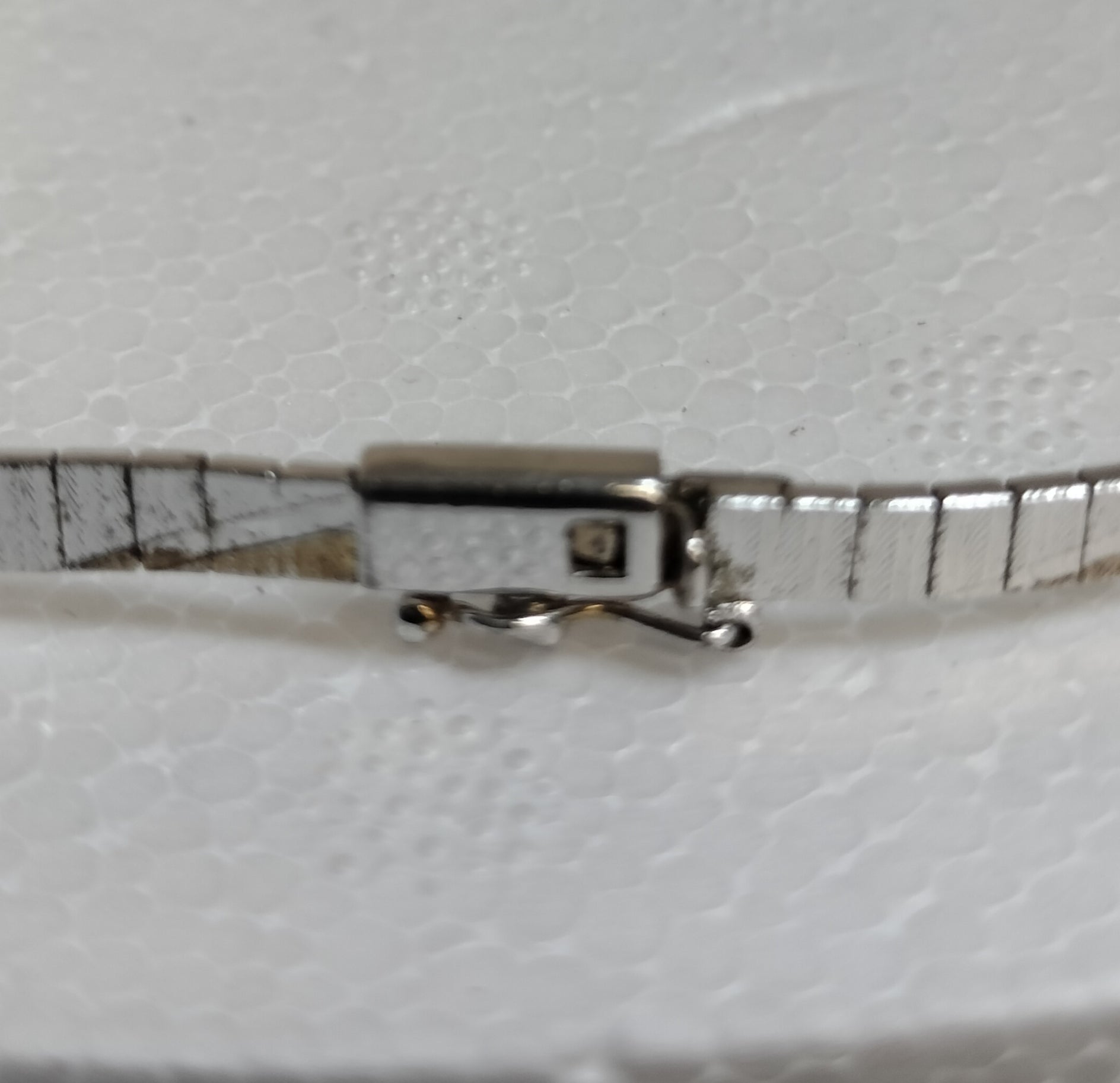 Expertly crafted with 18.6 grams of sterling silver and a luxurious gold overlay, this omega necklace is a stunning addition to any jewelry collection. Its 16.5 inch length and 3.8 mm thickness make it a versatile piece, perfect for any occasion. The secure box clasp adds both style and functionality, making it an ideal choice for daily wear. An estate piece that exudes elegance and sophistication.