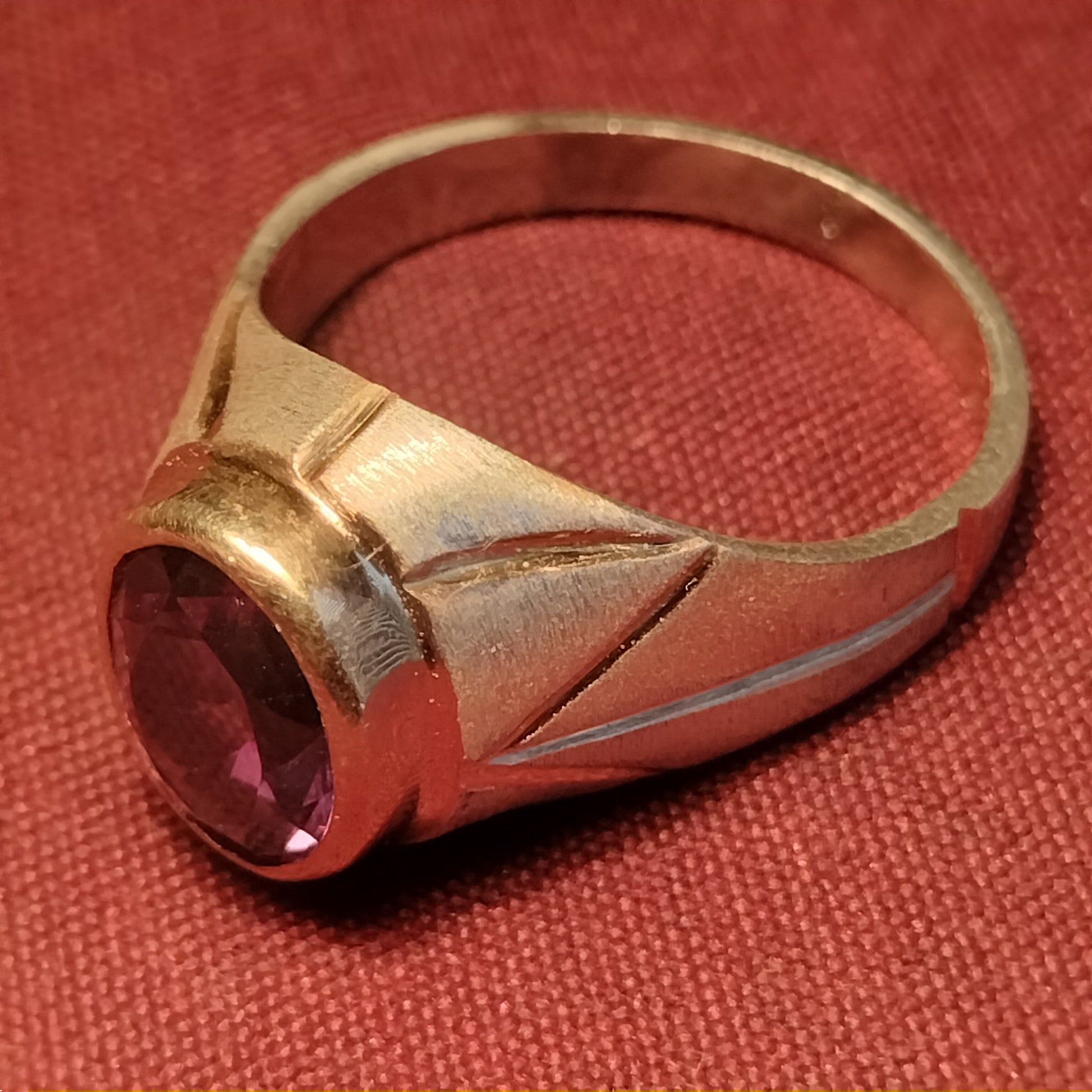 Indulge in the luxurious beauty of this Sterling Silver Amethyst Ring. Handmade by artist Tanean Bijl, this elegant ring features a two-tone design and a natural oval bezel set amethyst, boasting 2 carats of pure opulence. Weighing 4.7 grams and available in a size 8.5, this ring is a true statement piece that will add a touch of sophistication to any outfit.